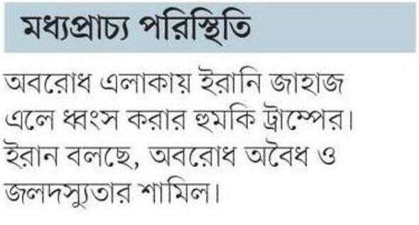 পাকিস্তানে ইরান ও যুক্তরাষ্ট্রের প্রায় ২১ ঘণ্টার আলোচনা ব্যর্থ হয়। এর কয়েক ঘণ্টা পর গত রোববার প্রেসিডেন্ট ট্রাম্প হরমুজ প্রণালিসহ ইরানের সব বন্দর অবরোধের হুমকি দিয়েছিলেন। গতকাল মার্কিন সামরিক বাহিনীর সেন্ট্রাল কমান্ড (সেন্টকম) তা কার্যকর করে।